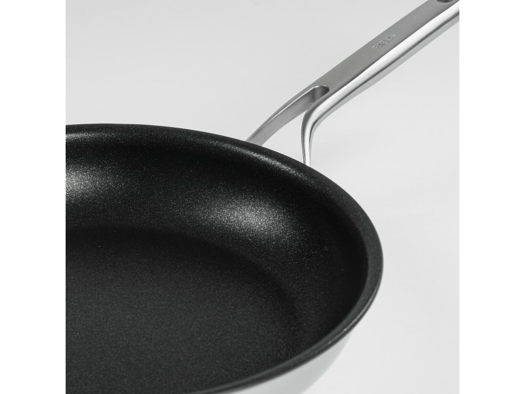 Dostalo se mi toho privilegia, že jsem si mohl v rámci spolupráce se značkou FABINI navzorovat svou vlastní sadu pánviček, kterou bych chtěl doma mít pro všechny základní úkony. Navzorovali jsme společně tuhle mělkou nepřilnavou pánvičku. Je udělaná ze zatím technologicky nejodolnějších nepřilnavých povrchů. Nemusíte se obávat přichytávání surovin ke dnu a na vaření vám bude stačit minimální množství tuku. Je ideální pro přípravu vaječných a křehkých jídel. Je z pětivrstvé nerezové oceli, takže se rychle nahřeje a skvěle vede a udržuje naakumulovanou teplotu. Odstranili jsme z vnitřní strany nýty, sice drobná úprava, ale usnadní míchání po obvodu i čištění.