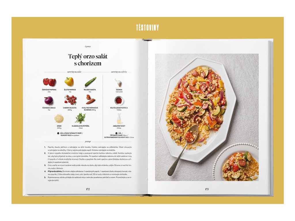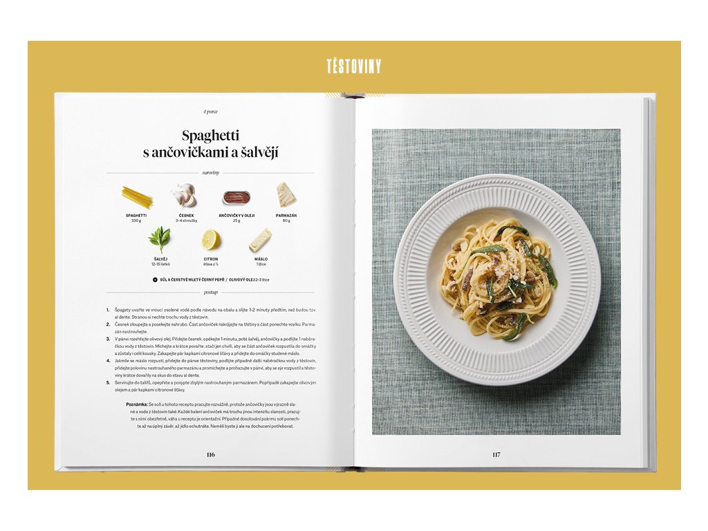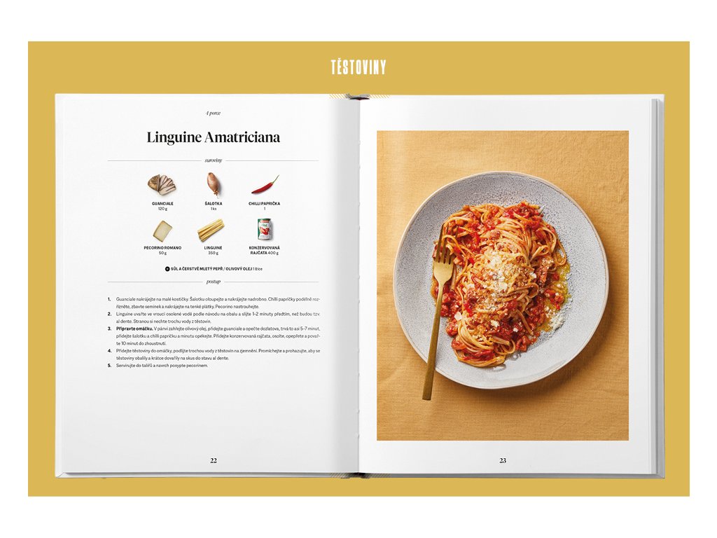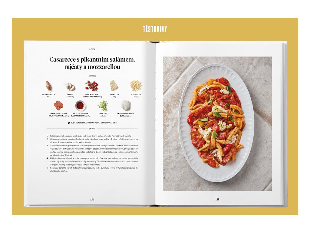 Co vás napadne jako první, když potřebujete uvařit jednoduše, chutně a ze surovin, které zpravidla máte po ruce? Těstoviny jsou jasnou volbou, často i proto, že bývají tím nejrychlejším řešením. Italové jsou v této disciplíně mistry – jejich um založený na pár kvalitních surovinách a jednoduchém postupu koluje v domácnostech po celém světě. My jsme se této devizy, kterou nám těstoviny poskytují, rozhodli využít naplno. Díky své rozmanitosti, oblíbenosti, pochopitelnosti a snadné přípravě nám poskytují nepřebernou paletu receptů a skvěle zapadly do pokračovaní kuchařek z naší úspěšné řady Super jednoduše. Kromě spousty tradičních a nápaditých receptů vám v kostce vysvětlíme správný postup přípravy a představíme základní stavební suroviny, které těstoviny v „italském“ pojetí vyžadují. Skutečnost, že těstoviny milují i ti nejmenší, hovoří za vše.